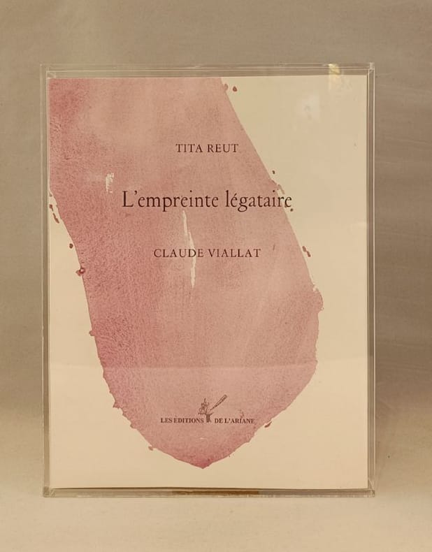 Les Éditions de l'Ariane, imprimé en France. 2014. Poésies de Tita Reut, empreintes originales de Claude Viallat. Couverture souple, à rabats, illustrée d'une empreinte originale. En feuilles. Ouvrage composé à la main sur papier Vélin dArches, typographié en Garamond corps 12 par François Huin sur les presses de la S.A.I.G. à lHaÿ-les-Roses. Étuis en Plexiglas réalisés par Marc Butti, Nice. Dim: 330 x 250 mm Tiré 21 exemplaires, tous signés au colophon par TITA REUT et CLAUDE VIALLAT.