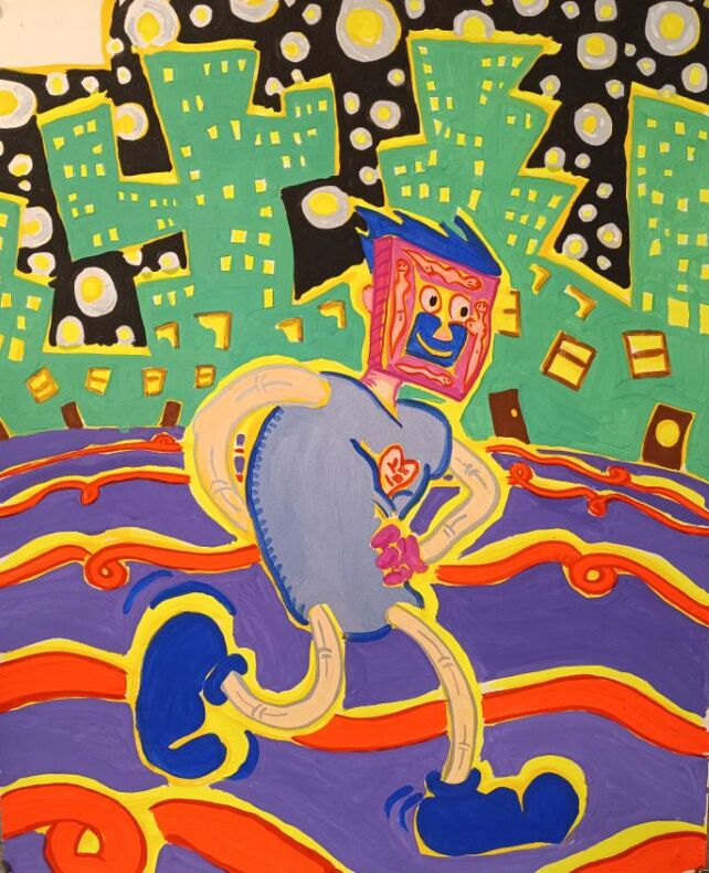 Peinture originale. Acrylique sur papier. ca 1990. Dim : 455 x 368 mm.