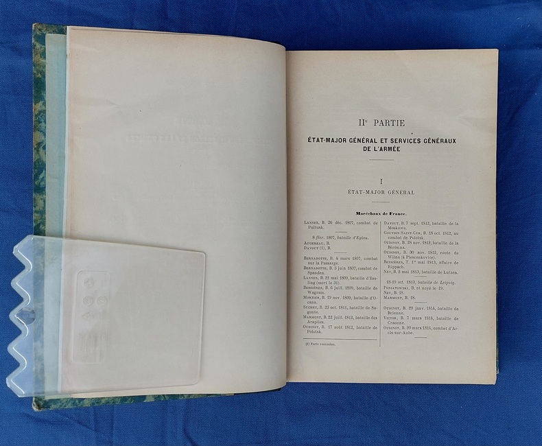 A Paris Limoges, H. Charles-Lavauzelle, s.d. [1899], 1 vol. grand in-8, demi-toile verte chagrinée, dos lisse avec deux filet enserrant le titre, dorés, 824 pp. Édition originale. Frottements aux mors, cachet “Bibliothèque de Garnison” sur la page de titre, rares brunissures, dernier feuillet (p. 824) coupé en bas avec manque mais sans atteinte au texte.