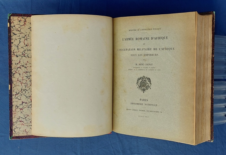 Très importante étude historique, épigraphique et archéologique composée par René Cagnat (1852-1937), qui fut le grand spécialiste de l'histoire de l'Afrique Romaine de son époque.