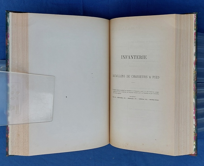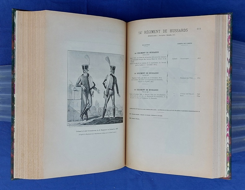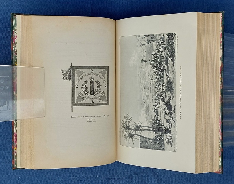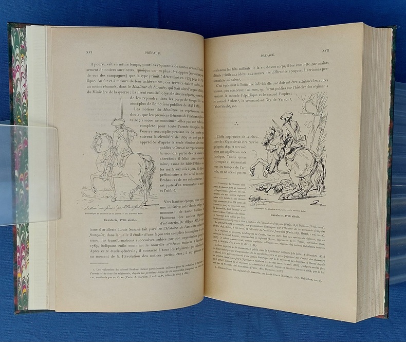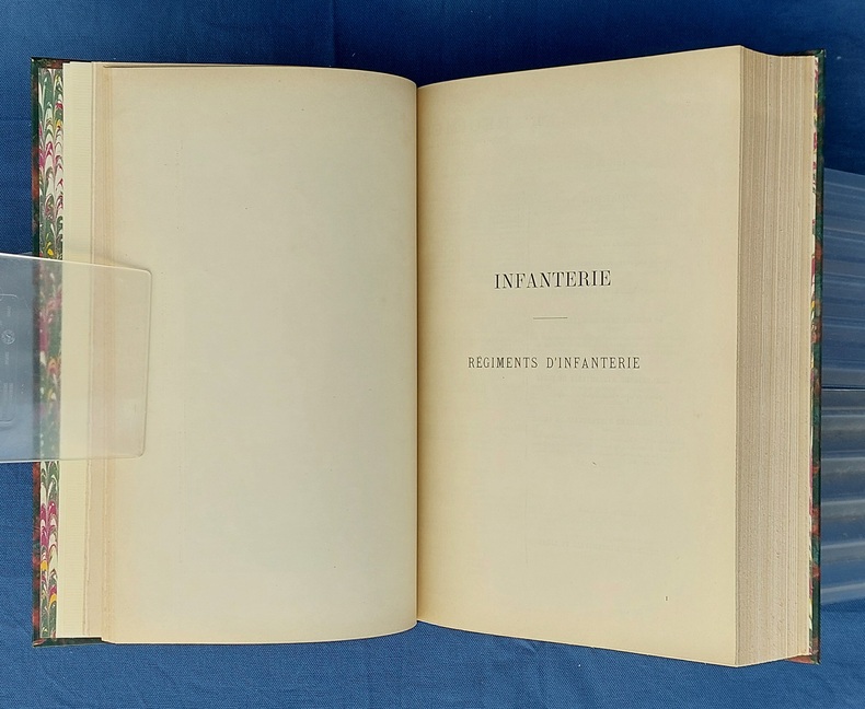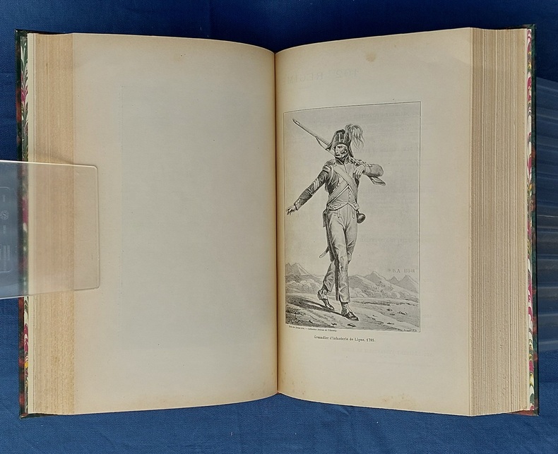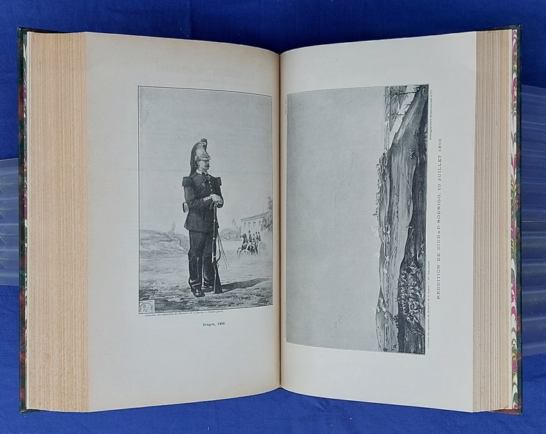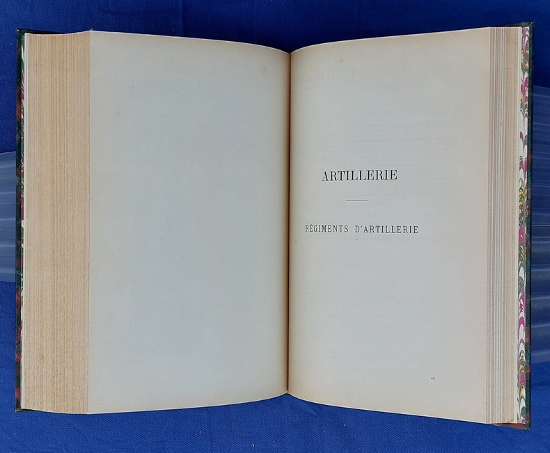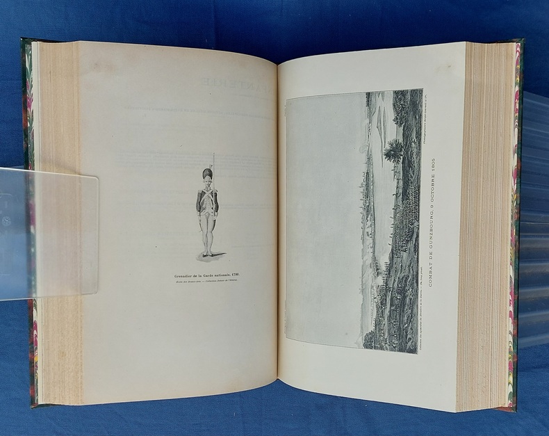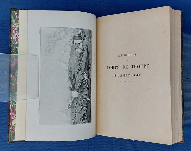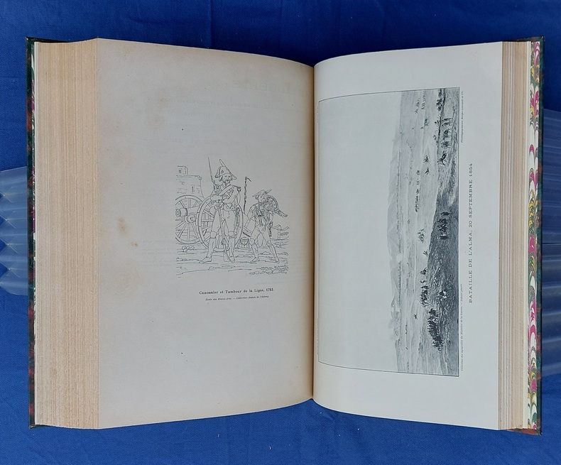 Paris, Berger-Levrault, 1900, un vol in-4, demi-chagrin vert postérieur, dos à nerfs orné de fleurons et du titre, dorés, couvertures conservées, avec la première illustrée par JOB - 1 f. n.c. - la Planche I placée en frontispice - XXXVII dont faux-titre et titre - 782 pp. - 1 f. n.c. “ACHEVÉ D’IMPRIMER” - 52 pp. “Liste des fournisseurs de l’Armée” - Illustré de 35 planches hors texte et 75 gravures dans le texte, collationnées, “les planches et les gravures ont été, en principe, empruntées aux collections de la Guerre. Le Service Géographique a fourni les clichés photographiques originaux de ces planches et gravures.” - annonces typographiques et illustrées dans le catalogue in-fine. Dos légèrement passé, très rares pâles rousseurs, reliure postérieure avec restauration de la couverture.