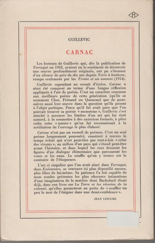 Paris : Gallimard, 1961, 1e édition. Broché 18,5x12cm, 164 pages. [BE]