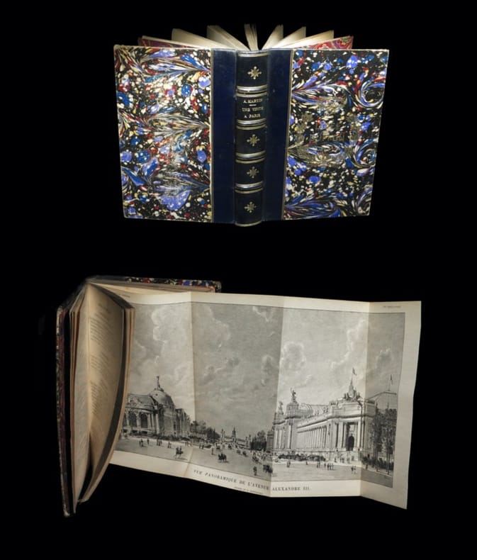Exemplaire revêtu d'une agréable reliure du temps. Il renferme 14 (sur 14) plans sur double-page en couleurs, une planche panoramique ainsi que 16 (sur 16) jolies planches hors-texte. Angles et coupes élimés. Quelques claires rousseurs dans le texte. Du reste, bonne condition.
