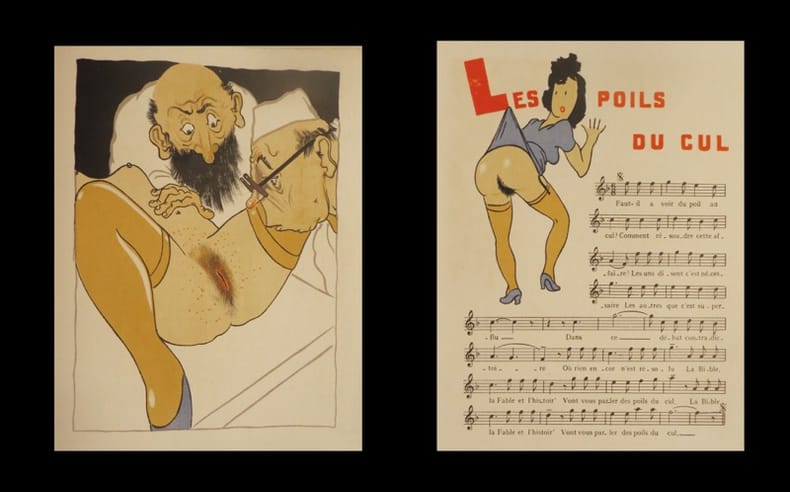 Edition tirée à 1010 exemplaires, un des 200 « exemplaires d'interne », nominatif, sur Vélin chiffon de Lana ; illustrée de 50 dessins en couleurs in-texte (pleins pages, bandeaux et culs-de-lampe) par Raymond LEP. Elle réunit 50 chansons "légères" et grivoises, suggestivement ornées. La pochette contenant les musiques donne 44 airs sur lesquels elles se chantent. « Les textes et la composition de ce recueil sont l'uvre commune des internes des hôpitaux de Paris (1943-44) qui, représentés par leur Comité Central, l'on fait imprimer par souscription pour l'usage exclusif des salles de garde et du Corps Médical ».Raymond Leprêtre, dit LEP, était un dessinateur originaire de Divion (Pas-de-Calais, 1926-2013), auteur de bandes dessinées et de dessins de presse. Il a illustré aussi de nombreux ouvrages.