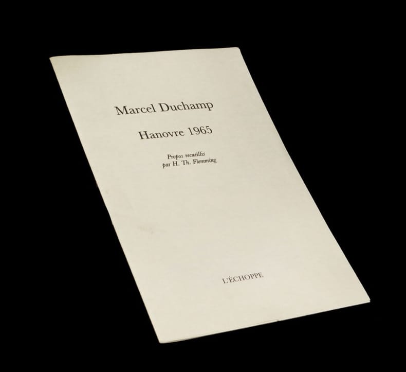 Edition originale de la traduction française ''imprimée à quelques dizaines d'exemplaires adressés aux amis de L'Echoppe'' constituée d'une interview de Mrcel Duchamp réalisée par Flemming en 1965. Très belle condition. Peu courant.