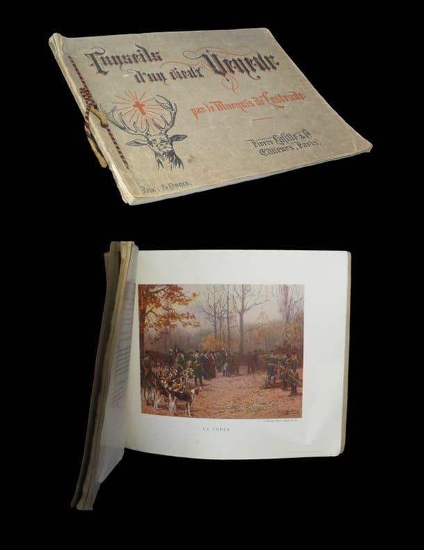 Edition originale de cette ''charmante publication, devenue rare''. (in Thiébaud). Soigneuse réalisation, elle recèle de nombreuses compositions in et hors-texte en noir et couleurs. L'ouvrage s'agrémente au premier feuillet d'un long envoi autographe signé de Georges de Lestrade. Table : De la manière de former un équipage - Réflexions sur les chiens des équipages - Ce que doit être un bon piqueur - Conseils aux veneurs suivant un équipage - Code de la chasse à courre - etc. Thiébaud, Bibliographie des ouvrages français sur la chasse, 587. Plats présentant un éclat altéré. Petit manque en tête et queue du dos. Petite tâche affectant l'angle des feuillets liminaires. Du reste, très belle condition intérieure.