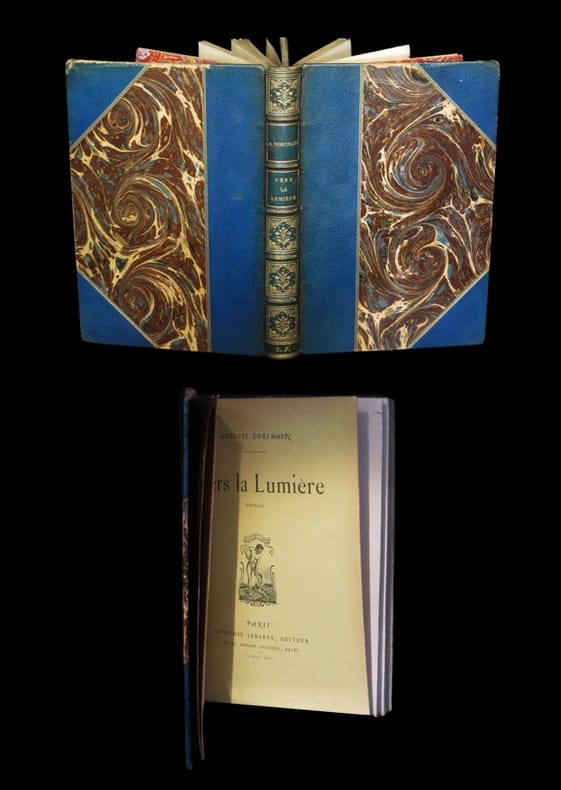 Edition originale ici revêtue d'une délicat reliure du temps. Angles, coiffes et coupes élimés. Nonobstant, très belle condition.