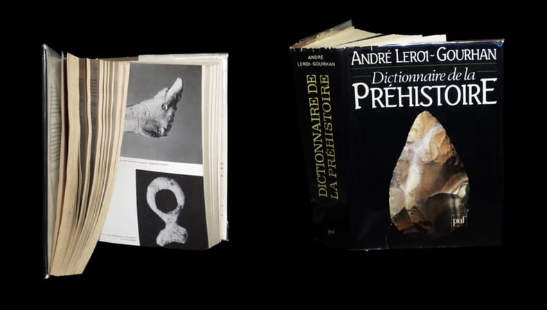 L'ouvrage s'agrémente de nombreuses figures dans le texte ainsi que de planches hors-texte. ''Fondation de notre mémoire, symbole de nos origines, commencement de notre culture, la Préhistoire est un livre ouvert sur l'infini des connaissances. Cet ouvrage se propose de restaurer l'appréhension des temps les plus anciens dans les perspectives d'un savoir de notre temps. Qu'il s'agisse des lieux, des monuments, des êtres, des matériaux, des périodes, des objets, de la mort ou de la vie, tout est ici présenté dans l'ordre d'une imagination créatrice qui donne à voir les schèmes constitutifs de l'humanité''. Coupes de la jaquette élimées. Laquelle présente quelques stries verticales au dos ainsi qu'une petite déchirure au premier plat. Du reste, bonne condition.
