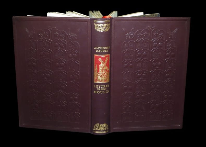 Un des 350 exemplaires sur papier vélin d'Arches (après 100 hollande) numérotés CI à CDL (n° CCCXVII), illustrations de Marcel Roche, Picart, Le Doux, Dignimont, Berthold Mahn, Berraud, Legrand, etc., 27 vol. grand in-8 carré reliure demi-chagrin à coins rouge, tête dorée, couvertures et dos conservées, dos à 5 nerfs, Librairie de France, Paris, 1929-1930, Tome 1 : Les Amoureuses. Le roman du Chaperon Rouge ; 2 : Le petit Chose. Histoire d'un enfant. ; 3 : Lettres de mon moulin - Lettres à un absent - Les petits Robinsons des caves ; 4 : Tartarin de Tarascon ; 5 : Contes du Lundi - Les Femmes d'artiste ; 6 : Fromont jeune et Risler aîné ; 7 : Etudes et Paysages. Robert Helmont. Journal d'un Solitaire ; 8 et 9 : Jack ; 10 : Le Nabab ; 11 : Les Rois en exil ; 12 : Numa Roumestan ; 13 : L'Evangéliste ; 14 : Sapho ; 15 : Tartarin sur les Alpes ; 16 : L'Immortel - La belle Nivernaise ; 17 : Trente ans de Paris ; 18 : Souvenirs d'un homme de lettres - Préfaces ; 19 : Port-Tarascon - Rome et Ninette - Entre les Frises et la Rampe ; 20 : Vie d'enfant - Le valet de ferme - Oeuvres provençales de Baptiste Bonnet, traduites par A. Daudet ; 21 : La petite paroisse, 1895 - Premier voyage - Premier mensonge - La Fédor ; 22 : Soutien de famille, moeurs contemporaines, 1898 ; 23 : Notes sur la vie ; 24 : La Doulou, la douleur, 1887-1895 ; 25 : Pages inédites de critique dramatique, 1874-1880 ; 26 et 27 : Théâtre