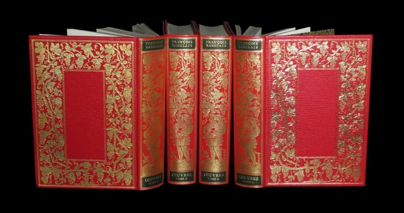 A Paris, chez Jean de Bonnot, 1973. 4 forts vol. au format gd in-12 (208 x 142 mm) de xv - 162 et 142 pp. ; 193 et 121 pp. ; 383 pp. ; 186 et 112 pp. Reliures uniformes d'édition de plein skyvertex cerise, filets dorés encadrant les plats, lesquels s'ornent en outre d'un important décor fleuronné doré, dos lisses à l'identique, pièces de titre et de tomaison ébène, titre doré, têtes dorées.