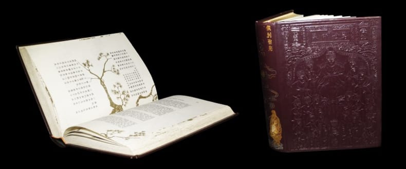 Edition bilingue : français et mandarin. Un des exemplaires du ''tirage spécial / exemplaire de tête'' ; revêtu de la signature de l'éditeur. ''Ces quatre livres forment avec les cinq King la base de l'enseignement classique. La Grande étude ainsi que l'Invariable Milieu constituent des parties détachées du Li Ki. Nous avons ici reproduit le plus fidèlement possible l'interprétation et les principaux développements données dans l'ouvrage de Teng Lin. La liste des souverains de la Chine et le vocabulaire placés en fin de volume donneront des renseignements historiques et géographiques ainsi que la valeur exacte des termes. Les auteurs anciens nous font connaître les idées qui de tout temps ont été comme l'âme du peuple chinois, les principes qui ont toujours régi et régissent encore l'individu, la famille et la société.'' Petites altérations superficielles affectant chacune des coupes supérieures. Du reste, très belle condition.