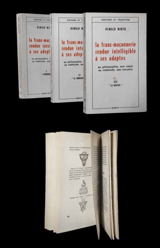 Ensemble complet des trois volumes constituant l'oeuvre maîtresse de Wirth. ''L'ouvrage débute par un Aperçu philosophique sur l'histoire générale de la Franc-Maçonnerie. C'est une étude qui résume tous les travaux parus jusqu'ici, fournissant des renseignements précis et à la fois sévèrement contrôlés au point de vue de la critique historique. Nul maçons ne peut se dispenser de posséder ces notions d'histoire. Puis viennent des développements inédits sur l'initiation maçonnique. Cette partie de l'ouvrage est d'une importance capitale.. Les rites initiatiques y sont, en effet et pour la première fois, interprétés philosophiquement. Les rédacteurs de cet ouvrage n'ont rien négligé pour en faire un document précieux à tous les titres. Son apparition marquera dans les annales de la Franc-Maçonnerie à élever puissamment le niveau intellectuel de notre Ordre. Ajoutons que l'ensemble est orné de curieuses gravures extraites des documents les plus rares''. (Fesch). Fesch, Bibliographie de la Franc-Maçonnerie, 1457 (pour une édition antérieure). Quelques piqûres affectant les plats. Rares passages surlignés dans le dernier volume. Du reste, bel ensemble.