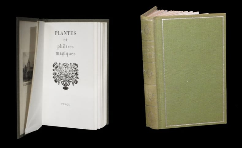 S.l., Tchou / Coll. ''Le Livre de chevet'' / Bibliothèque des Plantes, (1973). Un vol. au format in-16 (127 x 78 mm) non paginé. Reliure d'édition de pleine toile satinée anis, filet doré encadrant les plats, dos lisse orné de filets dorés, fleurons dorés, titre doré.