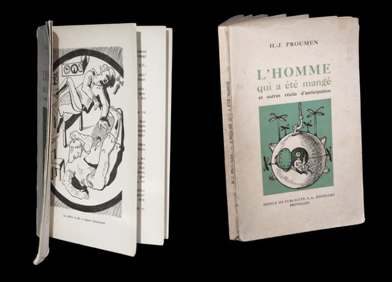 Edition originale agrémentée de compositions in et hors-texte par Olger. Proumen ''était professeur et fut un auteur belge estimable''. (in Versins). Versins, Encyclopédie de l'utopie et de la science-fiction, 701-b. Quelques marques d'usage affectant dos et plats. Petit déchirure en marge inférieure de la page de titre. Du reste, bonne condion.