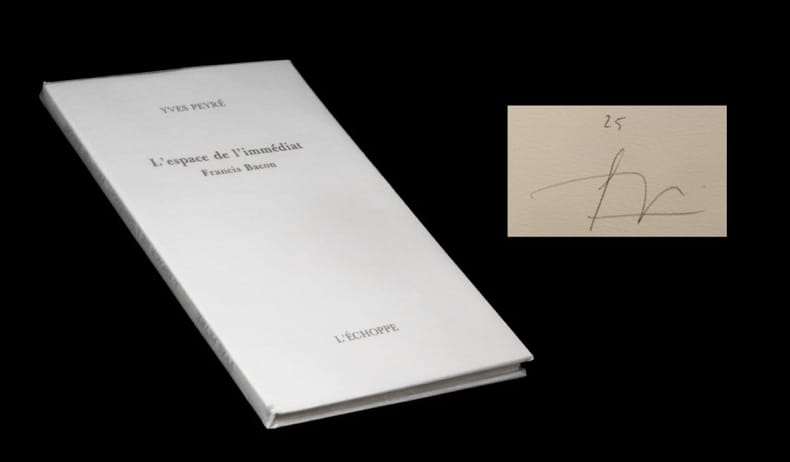 Edition originale. Un des 30 exemplaires du tirage numéroté sur vélin ; justifié à la main au colophon et agrémenté de la signature de l'auteur. ''Il faut tirer le fil de la peinture de Francis Bacon et aller au bout de son désir : cette beauté, qui sans trêve côtoie l'effroyable et flirte avec lui, ne nous laisse pas en paix''. Dix ans d'Echoppe, n°89. Très belle condition. Exemplaire non coupé.