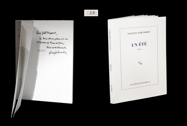 Edition originale. Tirage de tête : un des 20 exemplaires du tirage numéroté sur vergé de Vizille (seul papier) ; plus 7 hors-commerce. Exemplaire agrémenté au faux-titre d'un envoi autographe signé de Vincent Almendros. ''Jean, mon frère, venait d’acheter un voilier et m’invitait à passer quelques jours en mer. Je n’étais pas certain que ce soit une bonne idée que nous partions en vacances ensemble. Quand je dis « nous », je ne pensais pas à Jean.Je pensais à Jeanne.À Jeanne et moi.'' Très belle condition.