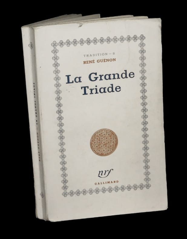Dernier ouvrage publié du vivant de René Guénon, La Grande Triade se caractérise par un recours prépondérant aux traditions extrême-orientales, particulièrement celles de la Chine et, avant tout, du taoïsme, que l'auteur avait connues et dont il avait traité dès ses premiers écrits. Toutefois, comme à son accoutumée, il y fait aussi de nombreux parallèles et rapprochements avec d'autres traditions, tant orientales qu'occidentales : hindouisme, bouddhisme, judaïsme, islam, christianisme, franc-maçonnerie, hermétisme, pythagorisme, Fidèles d'Amour, etc. De la sorte, La Grande Triade répond clairement au propos constant de René Guénon : exposer les données de la Tradition primordiale, notamment en soulignant les convergences entre toutes les traditions authentiques. Même si, comme il le regrettait, ce livre n'eut d'abord qu'un faible écho, y compris dans les milieux qui se réclamaient de la pensée traditionnelle, l'ouvrage fit progressivement et discrètement son chemin, notamment parmi ceux qu'attirait l'Extrême-Orient. Voir le sommaire sur photos jointes.
