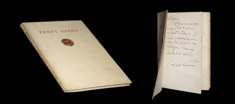 Edition originale. Un des exemplaires du tirage numéroté sur pur-fil Lafuma (seul papier). Celui-ci, agrémenté au deuxième feuillet d'un long envoi autographe d'Auguste Garnier. Plats présentant un éclat légèrement altéré. Quelques rousseurs dans le corps d'ouvrage. Du reste, bonne condition.