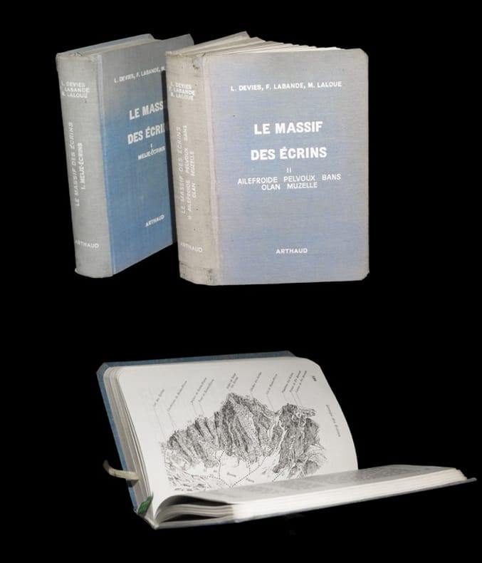 Ensemble complet des deux volumes le constituant. ''Toutes les éditions, complètes, sont peu courantes et recherchées''. (in Perret). ''M. Laloue et moi-même avons été particulièrement heureux de passer ici le témoin à un jeune alpiniste qui connaît déjà admirablement le massif et qui a saisi l'art difficile de décrire avec précision et concision un itinéraire. On reconnaît là l'élégance du mathématicien''. Perret II, Guide des livres sur la montagne et l'alpinisme, 1339. Coiffes de tête légèrement élimées. Dos passés. Du reste, très belle condition.
