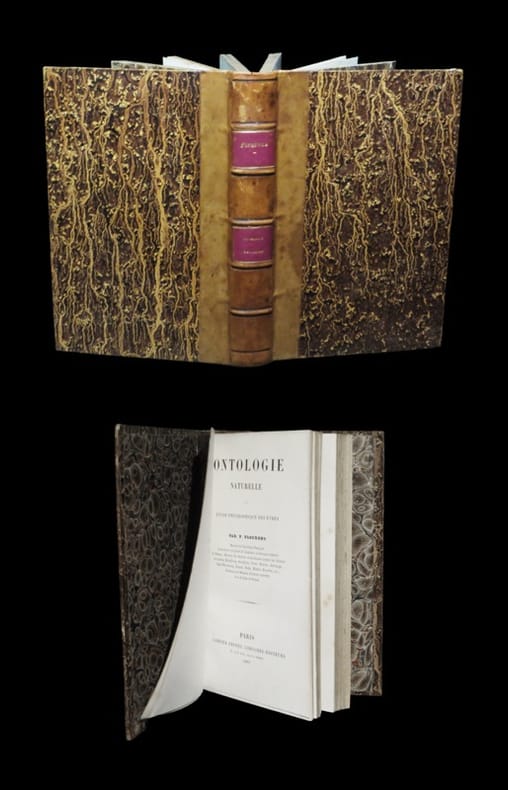 Edition originale. ''Il faut savoir des êtres, comment ils se spécifient, se forment, comment ils sont distribués dans l'espace et comment ils se sont succédés dans le temps. Ces quatre grandes questions se présentent, pour la première fois ici, rapprochées et unies ensemble par un lien philosophique. C'est ce que j'appelle la science des êtres ou l'ontologie, science nouvelle et qui ouvre le champ des grandes études physiologiques et zoologiques''. Légers frottements en tête du dos. De très rares feuillets sont pourvus de claires rousseurs. Du reste, belle condition.