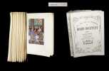 Un des exemplaires du tirage numéroté sur BFR Rives (seul papier). Il s'agrémente de délicieuses compositions en couleurs de Joseph Hémard. ''Surtout connu pour ses nombreuses illustrations de livres, où son talent léger mais toujours spirituel sait tirer parti des personnages et des situations''. (in Bénezit). Carco dît de lui : ''Son oeuvre fait penser à celle d'un imagier du XVème siècle qui aurait risqué sur nos moeurs et notre costume les plus exactes des anticipations''. ''La passion de Dodin-Bouffant, c'est celle d'un homme gouverné par ses sens. Attention ! Non pas des sens vulgaires et brutaux mais des sens que l'on garde bien en mains, tels les chevaux du quadrige, sauf qu'ils sont cinq au lieu de quatre. Tout entre en jeu dans la dégustation. On jouit d'abord des choses avec la vue, laquelle permet de supputer les plaisirs qui vont suivre. Puis l'odorat introduit aux voluptés du goût, celui-ci se confondant avec le toucher, le toucher lingual. J'entends une voix disant : « Et l'ouïe, qu'en faites-vous ? » L'ouïe perçoit la musique produite par les instruments culinaires. Elle est inscrite dans le moindre coulis ou le plus simple hachis. Ainsi, on peut dire que Dodin-Bouffant - il épousera celle qui sait mettre tous ses sens en émoi par le truchement d'une dodine - est le champion de la sensualité gastronomique. Il est excellent qu'à une époque où la sexualité tend à détrôner la sensualité, on ait réédité un ouvrage où s'épanouit, sans jamais choquer les bonnes mœurs ; le sadisme de la table.''Bénézit V, Dictionnaire des peintres, p. 480 - Osterwalder, Dictionnaire des illustrateurs, p. 491. Petit manque superficiel en queue du dos. Du reste, très belle condition.