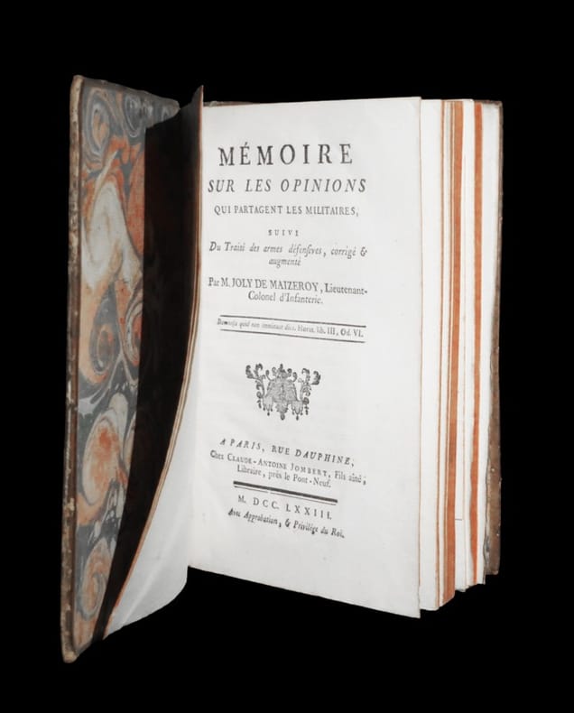 Seconde édition ; en partie originale. Exemplaire complet de ses 4 planches dépliantes gravées. ''Engagé à 15 ans dans l’armée, très jeune l'auteur prit part aux campagnes de Bohème et de Flandres avec le comte de Saxe et se conduisit brillamment au siège de Namur et aux batailles de Raucoux et de Lawfeld. Il participa ensuite la guerre de Sept Ans avec le grade de lieutenant-colonel. En 1771, il créa le concept de ''stratégie''''. Brunet VI, Manuel du libraire et de l'amateur de livres, 8612 - Quérard IV, La France littéraire, p. 238. Angles et coupes élimés. Craquelures au dos. Petit manque superficiel en tête du dos. Quelques rares rousseurs dans le texte. Du reste, bonne condition. Peu courant.