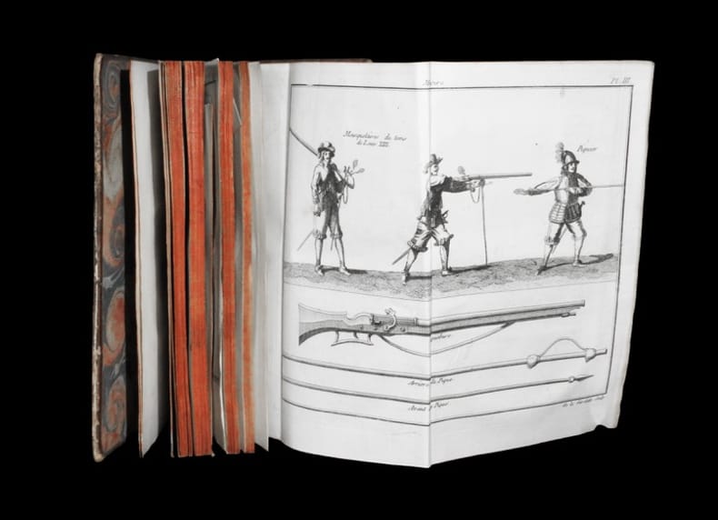 A Paris, chez Claude-Antoine Jombert Fils Aîné, 1773. Un vol. au format in-8 (203 x 133 mm) de 1 f. bl., xx pp., 1 f. n.fol. et 216 pp. Reliure de l'époque de plein veau marbré havane, plats jansénistes, dos ) nerfs orné de filets gras à froid, jeu de petits filets verticaux gras et maigres dorés sur les nerfs, doubles caissons d'encadrement dorés, fleurons dorés, pièce de titre de maroquin acajou, titre doré, palette dorée en queue, filet doré sur les coupes, tranches saumon.