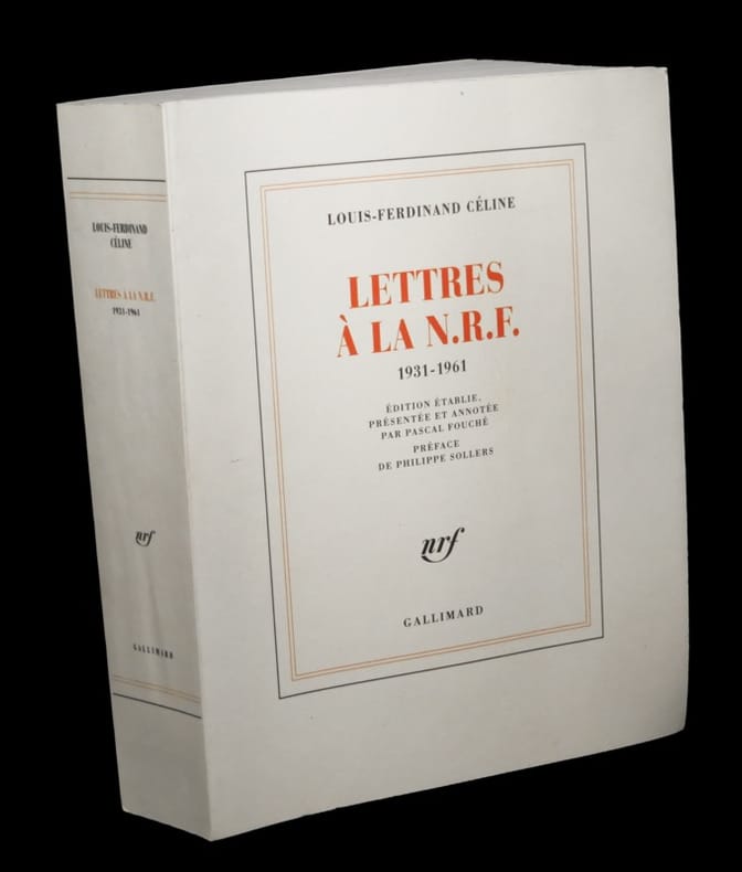Edition originale. ''Ces lettres à la NRF regroupent l'ensemble de ce que Céline a écrit aux divers responsables de ses publications aux Editions Gallimard. Principalement Gaston Gallimard, bien sûr, qui a suivi toute sa carrière, mais aussi Jean Paulhan, le premier à le republier après la guerre, et Roger Nimier, qui s'est occupé de ses livres à partir d'Un château l'autre et lui a véritablement fait retrouver la reconnaissance du public. Lorsqu'elles existent, figurent également ici les lettres de ses interlocuteurs car c'est le croisement de cette correspondance qui permet de suivre leurs rapports et leurs évolutions''. Très belle condition.