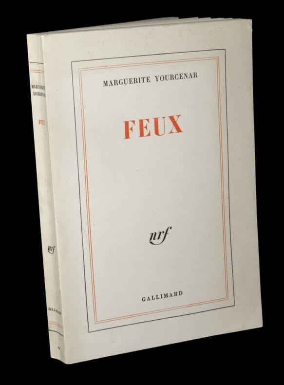 ''Feux est une suite de nouvelles, de proses lyriques, presque de poèmes, inspirés par une certaine notion de l'amour. Alternant avec des notes sur la passion amoureuse. « Dans Feux, où je croyais ne faire que glorifier un amour très concret, ou peut-être exorciser celui-ci, écrit l'auteur, l'idôlatrie de l'être aimé s'associe très visiblement à des passions plus abstraites, mais non moins intenses, qui prévalent parfois sur l'obsession sentimentale et charnelle.""" Premier plat présentant un éclat très légèrement altéré. Du reste, très belle condition.