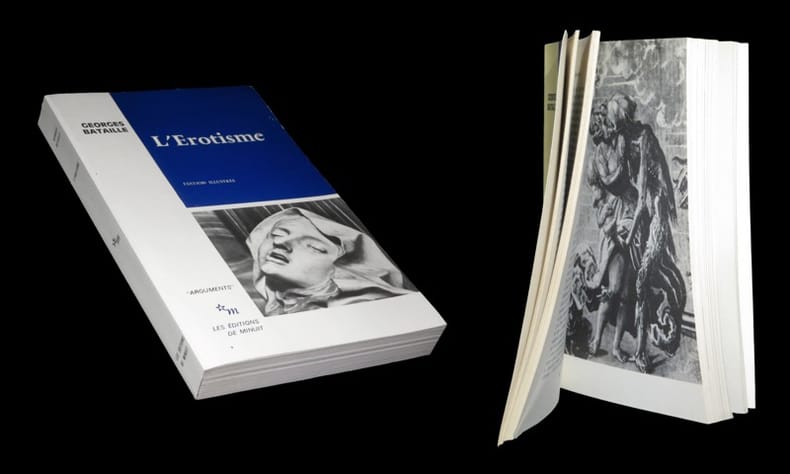 L'ouvrage s'agrémente de planches photographiques. ''Les êtres qui se reproduisent, les êtres reproduits, sont des êtres distincts entre eux, séparés par un abîme, une fascinante discontinuité. Mais, individus mourant isolément dans une aventure inintelligible, nous gardons la nostalgie de la continuité perdue. L’activité sexuelle de reproduction, dont l’érotisme est une des formes humaines, nous la fait retrouver; au moment où les cellules reproductrices s’unissent, une continuité s’établit entre elles pour former un nouvel être à partir de leur mort. C’est aussi par la mort, la mort violente, que cet effort de libération s’est manifesté dès l’origine des activités de l’homme. Mais le désir de meurtre met en cause toute l’organisation de communautés fondées sur le travail et la raison. D’où la naissance d’interdits, à quoi s’oppose, ou plutôt s’ajoute, en un dépassement nécessaire, leur propre transgression. Guerre et chasse rejoignent ici l’inceste ou l’orgie sacrée...'' Très belle condition.