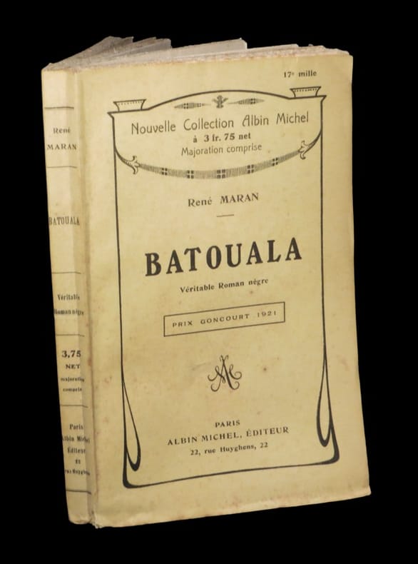 Edition originale (avec mention de ''mille'' portée au premier palt). René Maran est né le 5 novembre 1887 sur le bateau qui amenait ses parents d'origine guyanaise à Fort-de-France, où sa naissance fut déclaré le 8 novembre 1887. Il y resta jusqu'à l'âge de sept ans et partit au Gabon, où son père, Héménéglide Maran, exerçait un poste administratif colonial. Il devint lui-même, après des études de droit, fonctionnaire colonial. Dans son œuvre, Maran décrit notamment les excès du colonialisme, tout en étant Français de cœur. Il fut le premier Noir à obtenir le prix Goncourt en 1921 avec ce roman, qualifié de roman nègre. Quelques claires rousseurs sur les plats ainsi que dans le corps d'ouvrage. Du reste, belle condition.