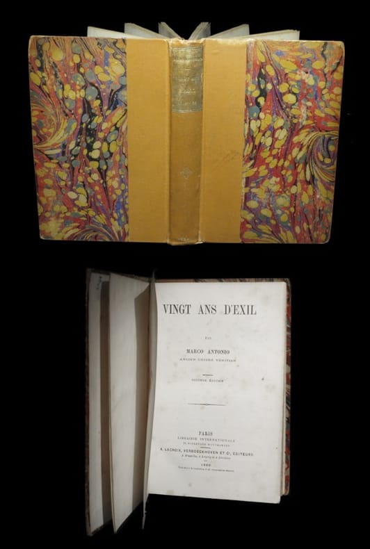Ediiton originale. ''On trouvera dans cet écrit des détails très curieux et peu connus sur l'histoire de Venise en 1848-1849. Il y a eu de longues années, parmi les émigrés vénitiens, sans une entente préalable, une espèce de conspiration du silence pour cacher une partie de notre histoire durant cette époque.'' Angles, coupes et coiffes élimés. Défaut affectant la seconde garde du relieur. Quelques claires rousseurs dans le corps d'ouvrage. Du reste, bonne condition.