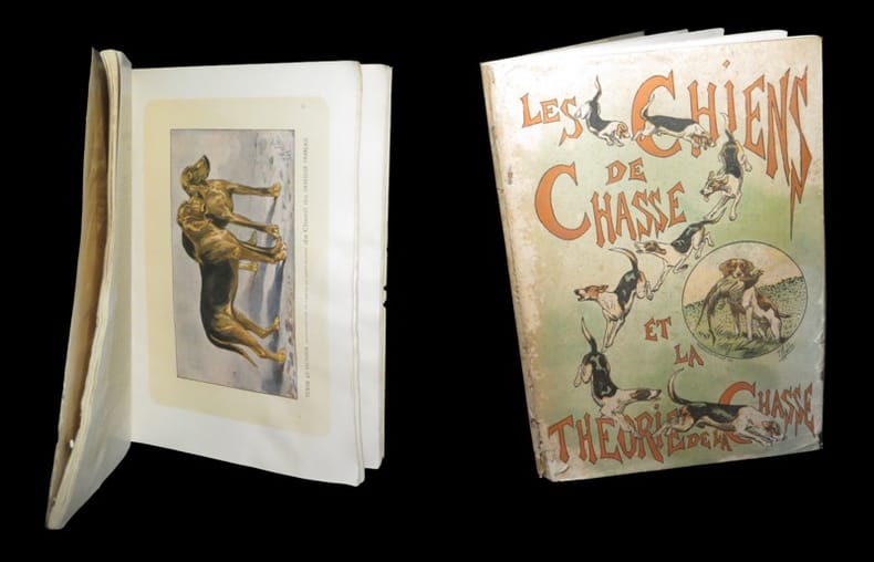 Belle publication, donnant les descriptions complètes de toutes les races, énumérant minutieusement les particularités qui les caractérisent, et reproduisant fidèlement en couleurs les types les plus purs et les plus beaux. En fin d’ouvrage on trouve une série très intéressante de croquis coloriés ayant trait à la Théorie de la Chasse, au Dressage, aux Fields-Trials et au Gibier. Ouvrage peu commun. Thiébaud, 623.