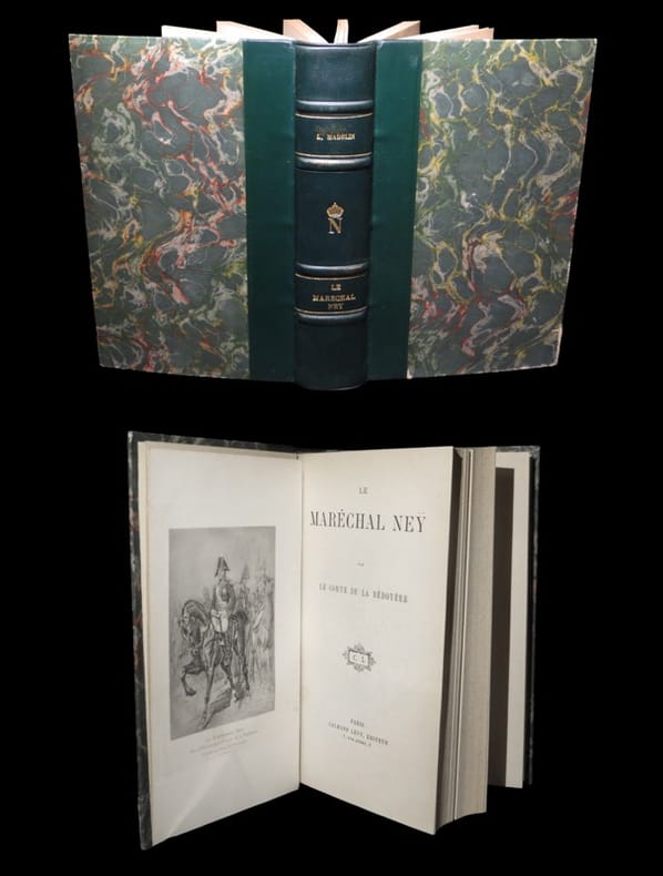 Edition originale. Elle s'ouvre sur un joli frontispice gravé d'après un dessin de Meissonier, recèle en outre un tableau ainsi qu'un fac-similé (dépliants) et une planche. ''Ayant trouvé dans les papiers de mon beau-père, Edgar Ney, des documents sin intéressants et si curieux, se rapportant au procès de son père, à sa famille et à quelques-uns de ses faits d'armes les plus discutés, j'ai entrepris de les rassembler, de les classer et de les publier. J'y ai adjoint quelques notes, empruntées à ses Souvenirs encore inédits formant pour ainsi dire un journal, et elles montreront le maréchal dans sa vie la plus intime, dans sa vie au grand jour, à la tête de son corps d'armée et sur les champs de bataille.'' Martin & Pigeard, Bibliographie napoléonienne, p. 528. Dos présentant d'infimes frottements. Du reste, très belle condition.