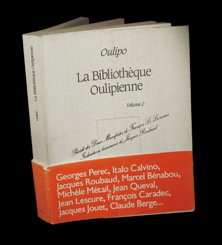 ''Entre 1974 et 1987, l'Oulipo a publié sous le nom de "Bibliothèque Oulipienne" trente-sept fascicules, tirés à 150 exemplaires et réservés à un cercle étroit d'amis. Ces textes courts sont une sorte de laboratoire joyeux où l'on voit jouer les mécanismes de la création littéraire.'' Plats présentant un éclat légèrement altéré. Papier oxydé. Du reste, bonne condition.
