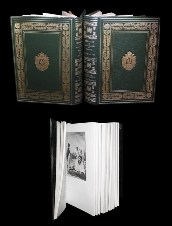 Un des exemplaires du tirage numéroté sur vélin filigrané. Ensemble complet des deux volumes le constituant. Il s'agrémente de 43 illustrations. ''Comme Gourgaud et Bertrand,Marchand avait pris des notes quotidiennes qu'il a mises en forme à l'intention de sa fille. Sa narration débute à l'entrée au service de l'Empereur en 1811 ; mais l'intérêt s'éveille surtout à partir du séjour à l'île d'Elbe, Marchand ne quittera plus Napoléon. Authentiques, ces Mémoires de tout premier ordre sont enrichis par un très bon appareil critique''.(in Tulard). Marchand entra en 1811 comme garçon d’appartement au service de la Maison impériale où l’on apprécia rapidement son intelligence et son dévouement. Il resta fidèle à Napoléon après la première abdication et fut choisi pour remplacer le premier valet de chambre qui s’était enfui. Il suivit même par la suite l’Empereur jusqu’à Sainte-Hélène et le souverain déchu trouva en lui un serviteur aussi attentionné qu’il l’avait été dans les heures de gloire. Servant d'infirmier, s'occupant de la toilette, des vêtements et de la nourriture de son maître, il est aussi lecteur, copiste et secrétaire. Marchand prit ensuite part à l’expédition du Retour des Cendres en 1840. Les mémoires qu’a laissés ce témoin exceptionnellement proche apportent un précieux témoignage sur les derniers jours de l'Empereur. Tulard, Bibliographie critique des Mémoires sur le Consulat et l'Empire, 502 (pour l'édition Plon de 1952 - 1955). Très belle condition.