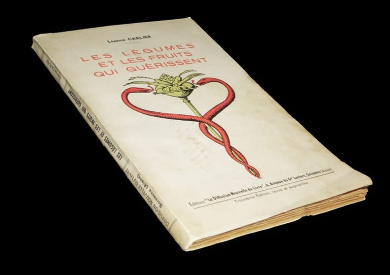 L'ouvrage s'agrémente de jolies figures en xylographie dans le texte. ''J'ai énuméré ici, pour chaque légume et chaque fruit, les propriétés qui le caractérisent. D'éminents médecins naturistes ont bien voulu me communiquer les résultats de leurs expériences, me permettant ainsi de fournir des données précises, scientifiquement éprouvées''. Plats présentant un éclat légèrement altéré. Papier légèrement oxydé. Petite plissure angulaire affectant quelques feuillets. Du reste, bonne condition.