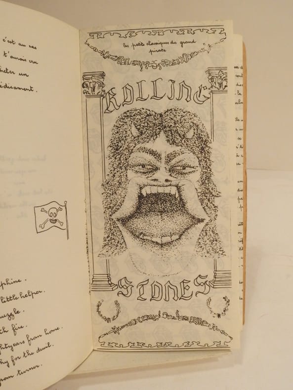Traduction, peut-être par Philippe Pissier, de chansons des Rolling Stones dans la collection "Les Petits classiques du grand pirate". Illustrations en noir. * Voir photographie(s) / See picture(s). * Membre du SLAM et de la LILA / ILAB Member. La librairie est ouverte sur rendez-vous.