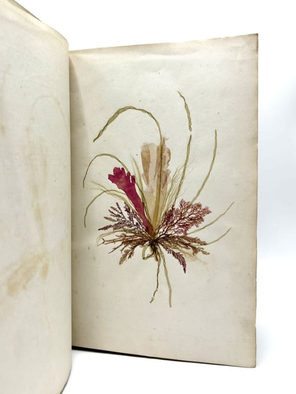 Paris auto-édité Reliure entoilée In-8, 163 pages et 50 planches de spécimens marins. Chaque exemplaire de cette première édition est unique. Composition d'algues séchées en frontispice. Le spécimen numéroté 49 bis est manquant, comme dans tous les exemplaires semble-t-il. Cartonnage un peu usé. Rare. * Voir photographie(s) / See the picture(s).