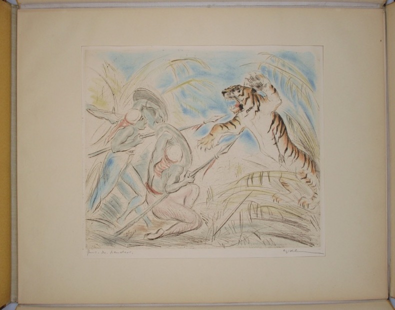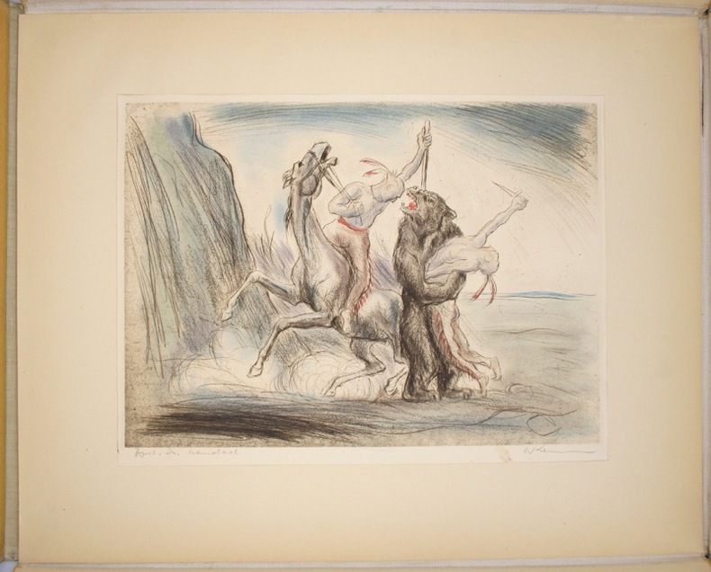 Puissantes gravures à l'eau-forte coloriées à la main par Klemm, peintre et graveur (1885-1957). Pas d'indication de tirage, semble très rare (aucun exemplaire sur Worldcat). / Powerful etchings colored by hand by Klemm, painter and engraver (1885-1957). Unknown print run, seems very rare (no copy on Worldcat). * Sennewald, Deutsche Buchillustratoren im ersten Drittel des 20. Jahrhunderts, p. 89. * Voir photographie(s) / See picture(s). * Membre du SLAM et de la LILA / ILAB Member. La librairie est ouverte sur rendez-vous.